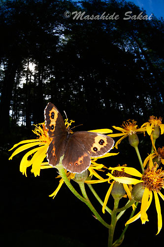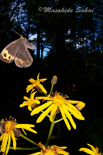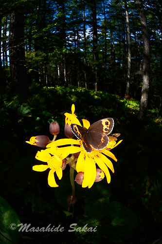 林床に咲くマルバダケブキにもよく吸蜜に訪れる。