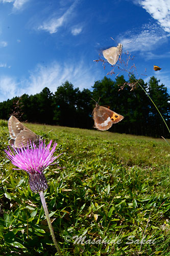 旧蜜中にオオチャバネセセリたちと争う様を観察する。