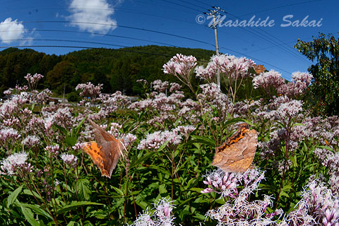 キタテハは数が多いので2〜数頭が写るシーンを狙ってみた。