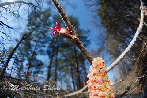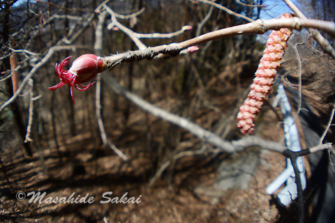 このツノハシバミの花を多く見かけることができ、
