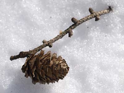 雪が積もると,森を歩くとき,足下をきょろきょろして見てしまう。 動物の足跡も楽しいのだが,いろいろな木の実などがくっきりと見ることができるから, 雪がないと落葉にまぎれて,そのものだけの写真は撮れないから, 雪が商品写真のスタジオになってくれた。
