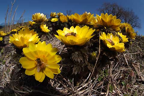 新しいSIGMAの10mm対角魚眼レンズで,フクジュソウに集まるミツバチを撮影してみた。 この季節で一番多く見られる昆虫はミツバチなので, 毎週時間があれば撮影している。フクジュソウも大きな花をつけるようになり, 集まるミツバチたちも非常に活発に活動するようになってきた。