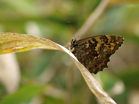 ヤマキマダラヒカゲが飛び始めた。 羽化直後の個体が多く,飛んでいると茶色というより, オレンジ色がかって見える。羽の裏の複雑な模様は, 針葉樹の樹皮に擬態しているのだろうか。