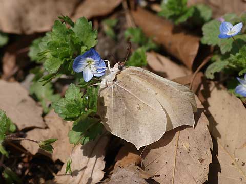 まだ,花は少ないので,小さなオオイヌノフグリで吸蜜する姿が目立つ。 左は,スジボソヤマキチョウ。越冬後は,羽がすすけたような色になってしまっている。 右は,キチョウ。こちらも越冬後だが,羽はとてもきれいだ。