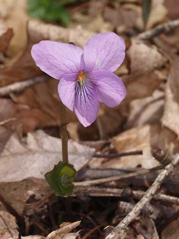 山際の春のスミレといえば,このタチツボスミレ(左)とアケボノスミレ(右)。 タチツボスミレは数が多く,土手が花でいっぱいになることもある。 アケボノスミレは,葉が出る前に花が咲き, 花がまとまって咲くことは少なく,ポツンポツンと見られる。