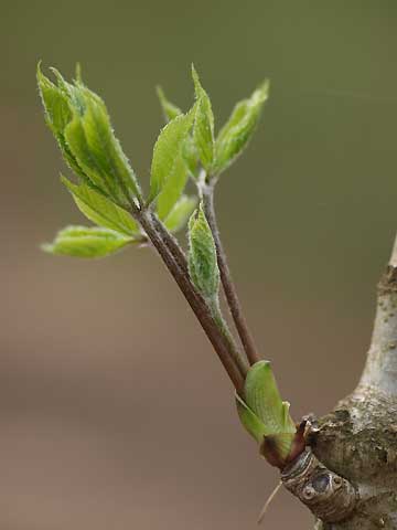 例年より5日くらい遅れて,コシアブラが食べごろとなった。 コシアブラは山菜として食べるのも良いが,その芽吹きは, 茶色の茎と,柔らかそうな緑の5枚の葉により,いかにも春の芽吹きとして の雰囲気を持っており,見応えがある。