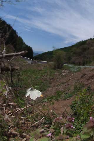 里山の開けた畑地には,ツマキチョウが多い。