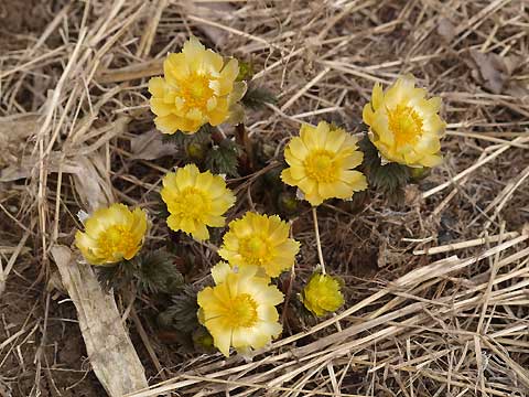 福寿草の花も見頃をすぎて,だいぶ枯れ始めて来た。
