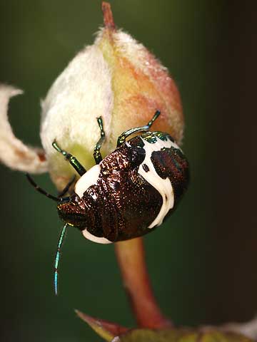 丸い方はアカスジキンカメムシの幼虫。緑の長細い方は,大型のツノカメムシの仲間かな。