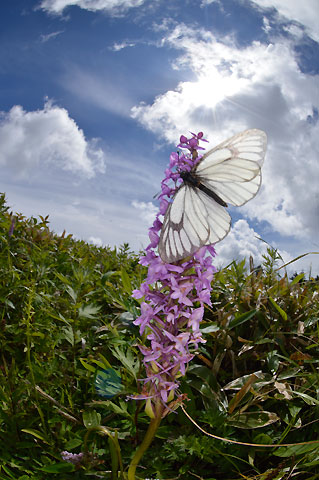 今日はミヤマシロチョウを見に稜線へ。