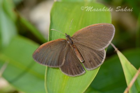 翅の表は,地味な褐色一色なのだが,