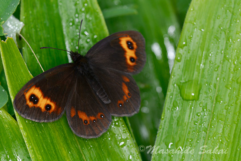霧雨が弱まると,一斉に葉の表に出て,開翅した。