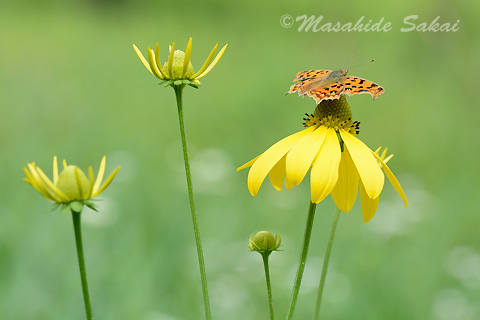 オオハンゴンソウの黄色の中で,最も良く目立つ蝶は,