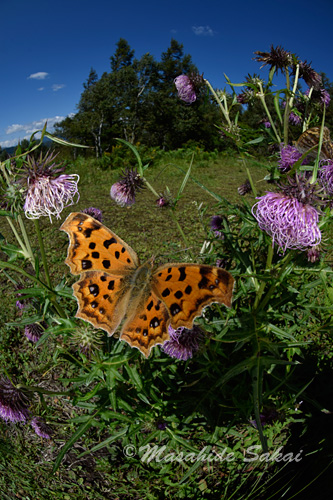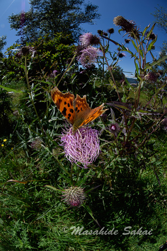 ヒョウモンチョウたちの中に分け入って吸蜜し,