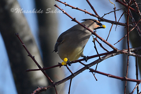 ヤドリギの,黄色い丸い実を,次々とほうばる。