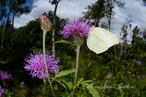 ヤマキチョウらしい,濃い黄色が,高原に映える。