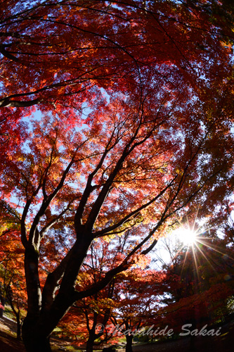 葉の色は,赤一色ではなく, 一つの樹でもグラデーションを帯びて, 色調変化を楽しむことができる。