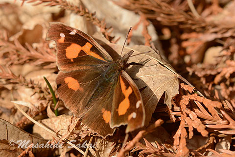 日当りのよい枯葉上に舞い降りて、日向ボッコをして体を温める。