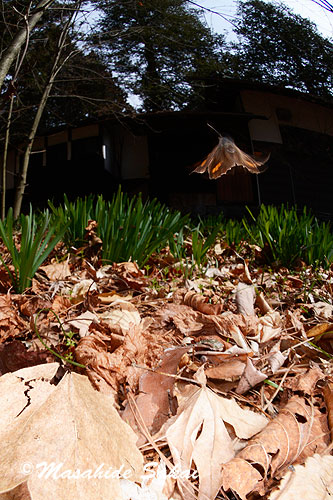 縄張りを見回るように飛んでは、枯葉の上で一休みすることを繰り返す。